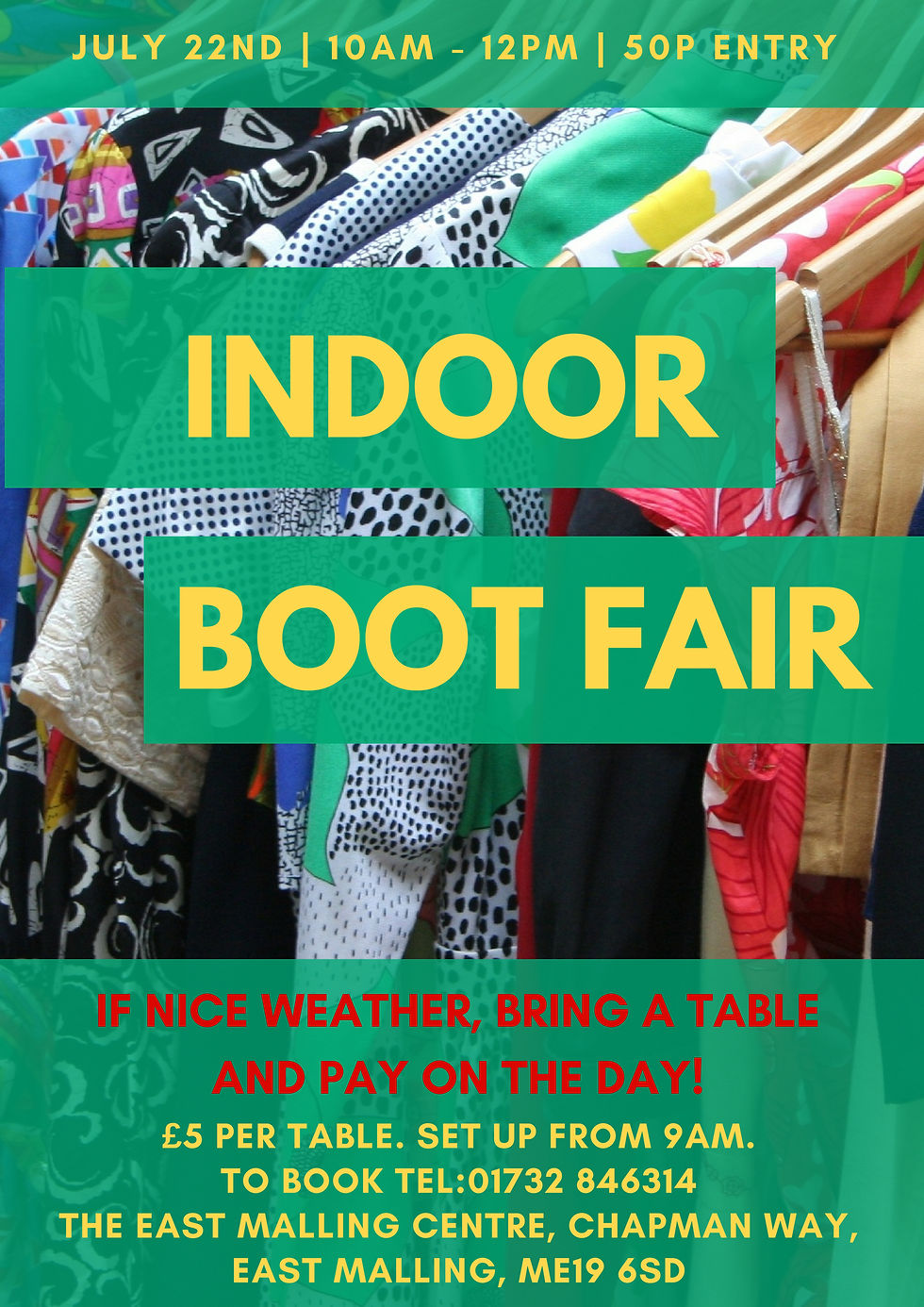 For the past two months the East Malling Centre has hosted a monthly indoor Boot Fair. These sales have been very popular with local residents wanting to have a clear out, as well as small business owners. The sales were started to raise much needed funds for the Centre. Stalls cost just £5, buyers pay a 50p entrance fee, and the East Malling Centre have been hosting their own stall stocked with donations as well. So far the sales have raise over £200 for the Centre!